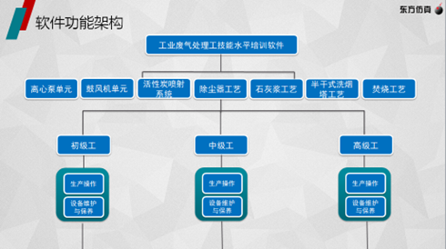 按照《工业废气治理工国家职业技能标准》进行软件开发,软件包含:焚烧工艺、活性炭喷射系统、除尘器工艺、石灰浆工艺、半干式洗烟塔工艺、离心泵单元、鼓风机单元等7个单元,几乎涵盖了工业废气治理行业中最为常见的几种基础工艺或单元。按照初、中、高级的技能要求依次递进,高级涵盖低级别的要求;包含生产操作、故障判断与处理的内容。考题严格按照标准,从实际生产角度出发进行设计,在保证符合标准和实际生产的前提下最大程度的激发学员的使用兴趣。